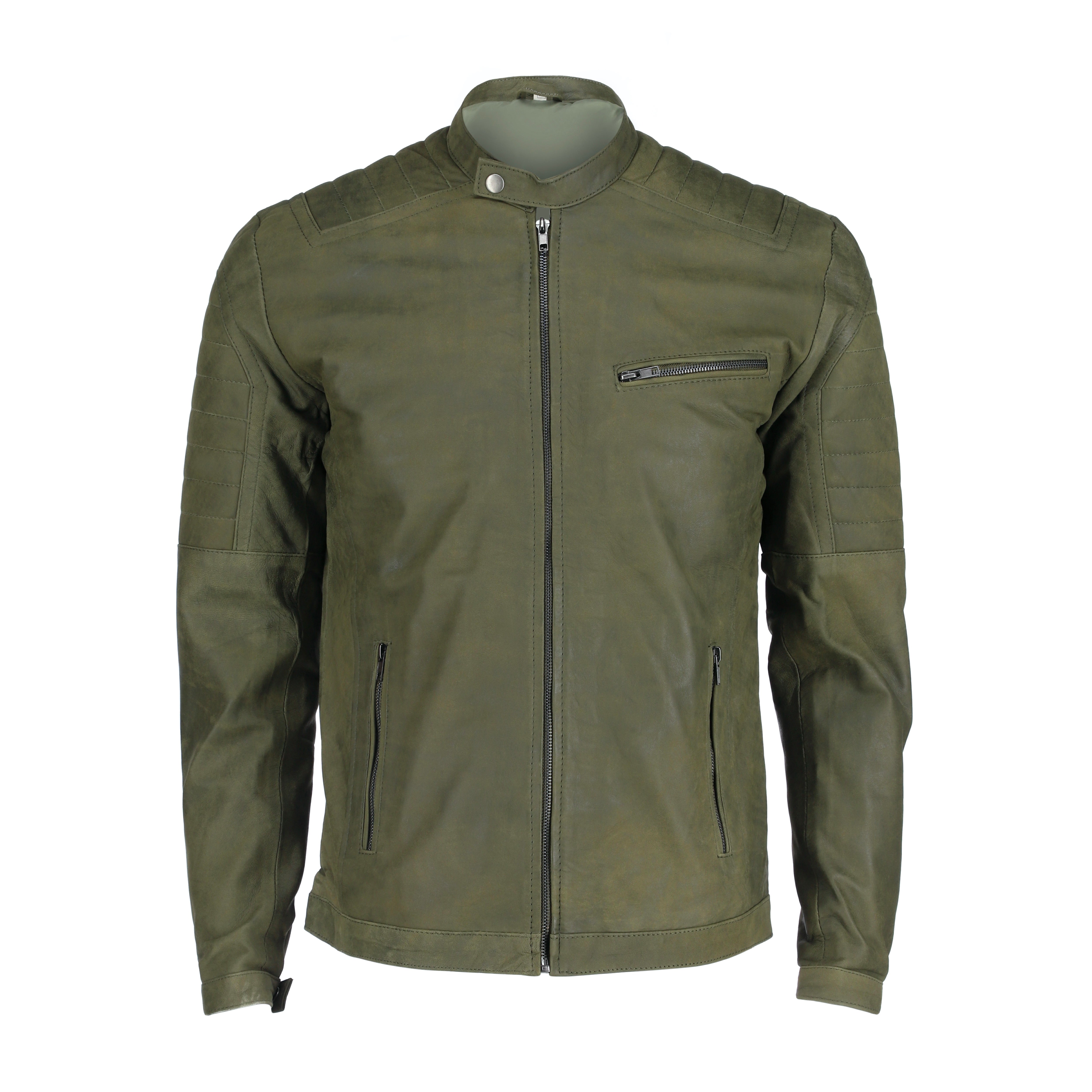 This Mens Green Classic Fashion Buff Soft Real Leather Jacket  Handmade and crafted from soft lambskin leather buffed for velvety touch . It comes with a simple and classy design and features, front zip fastener,front zipper pockets ,snap button collar, and a modern fit.